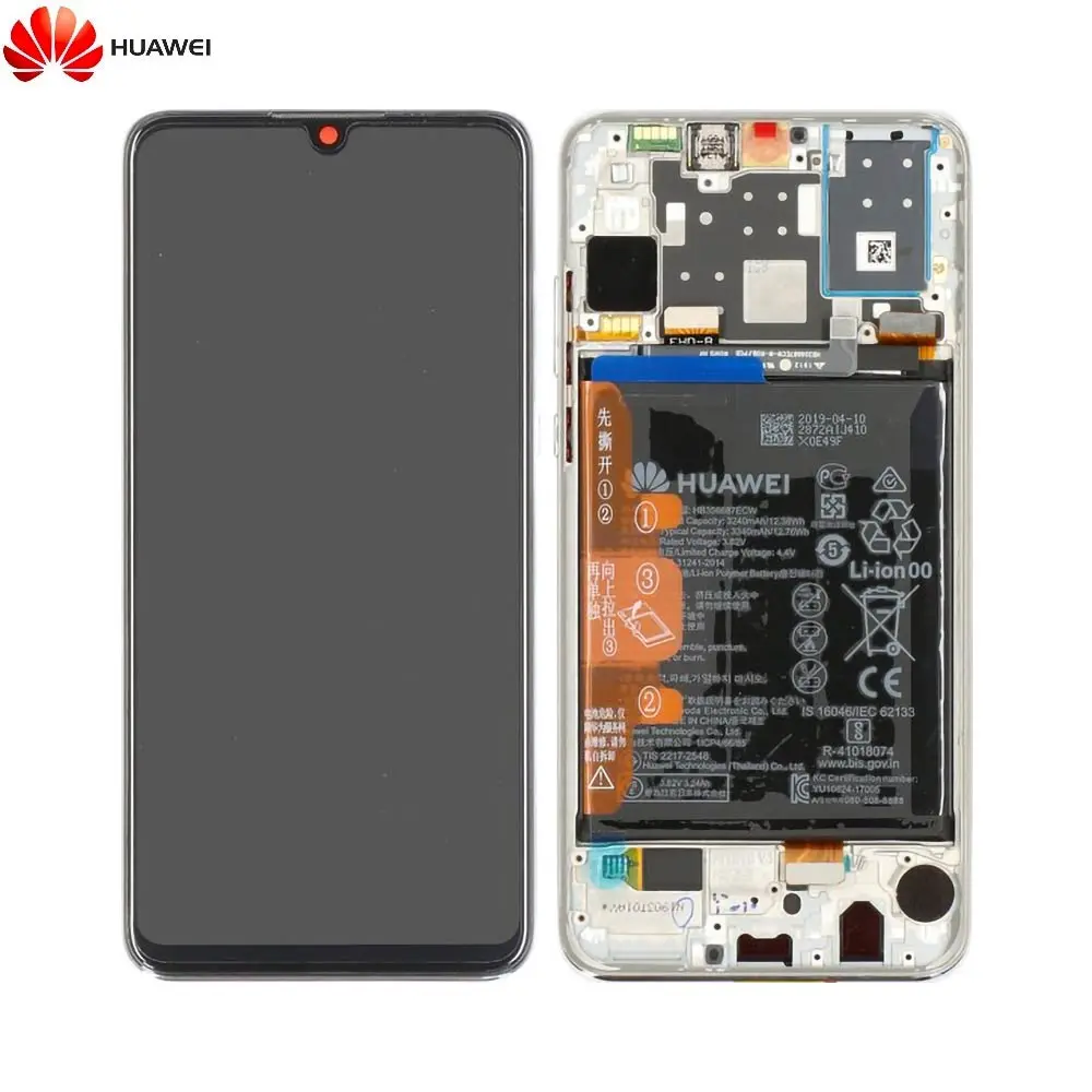 Bloc Écran Complet avec Châssis et Batterie Original Huawei P30 Lite 02352RQC Blanc Perle