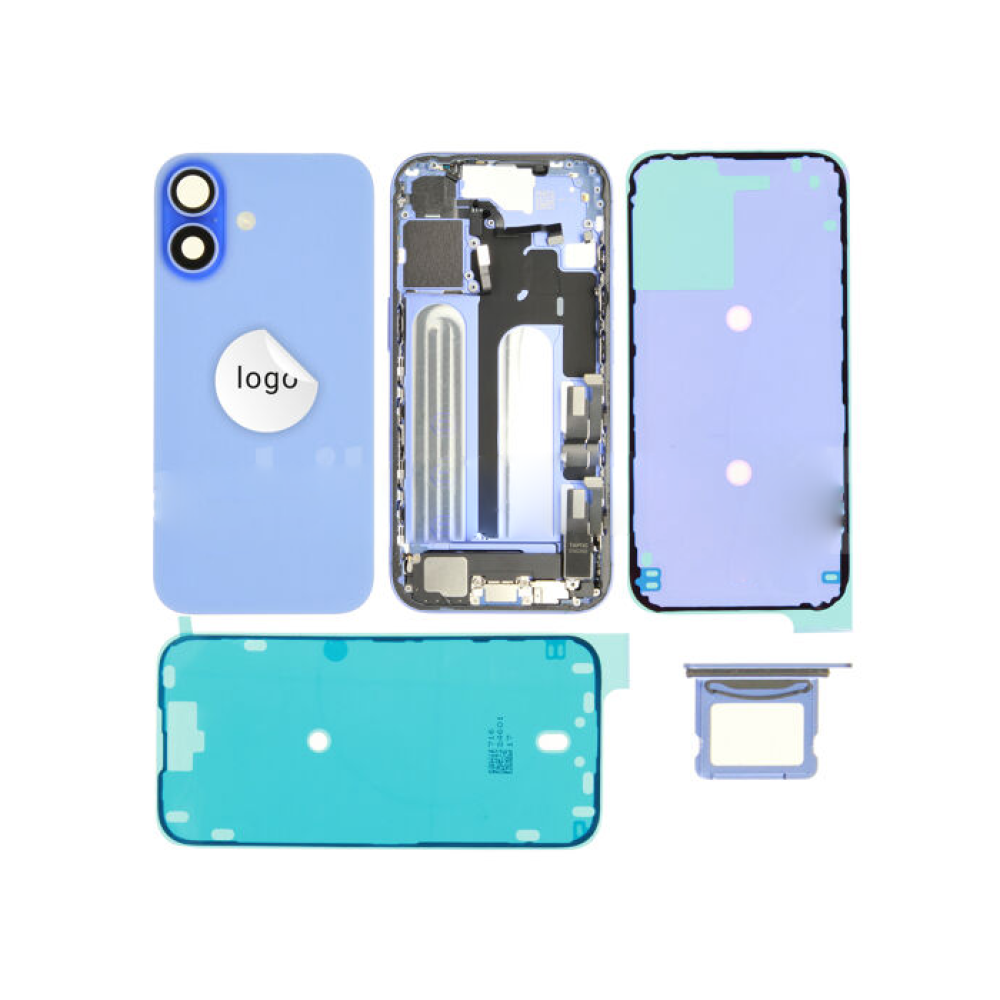 Original Cache Batterie et Vitre Arrière Grade B Plus Chassis intermédiare Bleu Pulled pour Apple iPhone 16